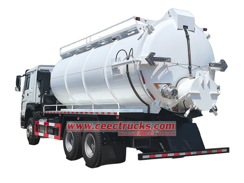 RHD, Jurop vacuum pump avaiableTrak tangki vakum Howo 20,000 liter ialah kenderaan khusus yang direka untuk sanitasi bandar dan rawatan air sisa industri, terutamanya digunakan untuk menyedut, mengangkut dan membuang enap cemar, kumbahan dan sedimen bercampur.