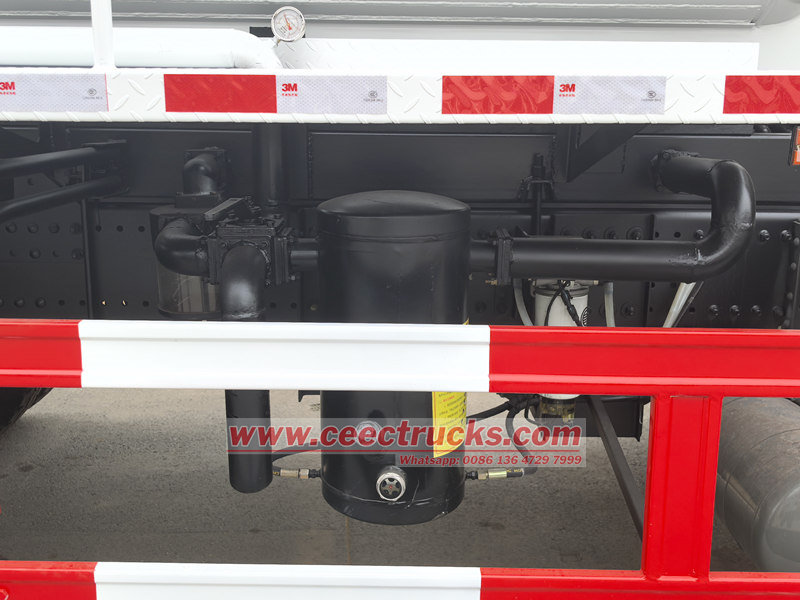 ● Penghantaran kuasa: Output kuasa oleh enjin casis dihantar ke pam vakum melalui kotak gear, pelepasan kuasa dan aci transmisi, dan pam vakum mula berfungsi.