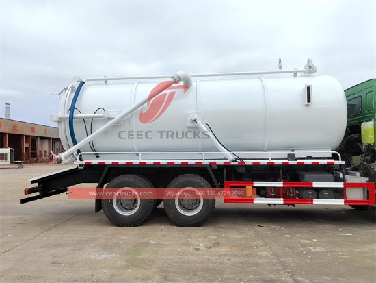 400hp HOWO 20000L trak kumbahan vakum eksport ke Afrika, enjin diesel WEICHAI 400HP, kotak gear manual 10-shift HW19710, kapal tangki bahan keluli karbon kekuatan tinggi, kapasiti boleh 16000 hingga 20000 liter. Pam vakum WEILONG yang terkenal di China dan pam vakum JUROP / BP / MORO yang diimport untuk pilihan, peranti angkat hidraulik untuk pembuangan sisa, mengecat dan logo bergantung pada permintaan.