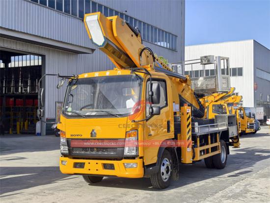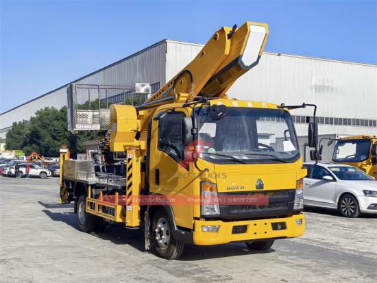 Insulation bucket can be achievedYang HOWO 18m aerial platform truck is a professional engineering special truck that integrates excellent technical performance and safety design. Built on the Howo light duty chassis, the truck is equipped with a ISF3.8s3154 engine with a maximum output power of 154 HP and a total vehicle mass of 8 300kg, which is flexible and powerful. The Howo light duty aerial platform truck has a maximum working height of 18 meters and a maximum working radius of 6 meters, and adopts a hydraulic static balance system to ensure stability.