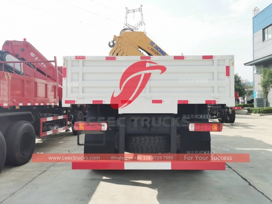 Trak kren knuckle boom HOWO 12 tan, casis pacuan tangan kiri HOWO 4x4, kotak gear manual 10 anjakan HW15710C, enjin diesel WEICHAI 266HP, kren boom knuckle 12 tan jenama terkenal China, dimensi badan kargo mengikut keperluan, pengecatan dan logo bergantung kepada keperluan.