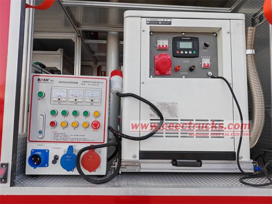 HOWO 4x2 Mobile Lighting Fire Truck with knuckle CraneHOWO 4x2 tender perlindungan kebakaran sederhana ialah peralatan kecemasan senario penuh dengan lampu bersepadu, bekalan kuasa dan fungsi angkat. Ia dibina pada casis Sinotruk TX350, dilengkapi dengan enjin National VI 350 kuasa kuda dan kotak gear 8-kelajuan, menggabungkan kuasa dan kebolehgerakan. Bumbungnya dilengkapi dengan lampu angkat pintar yang boleh meliputi kawasan dengan jejari 50 meter; set penjana segerak 50kW bersepadu menyokong pensuisan kuasa dwi dan bekalan kuasa peralatan; kren lengan lipat 5 tan di bahagian belakang menyokong 360°putaran dan angkat berbilang keadaan, sesuai untuk menyelamat, mengalihkan halangan, pembinaan semula dan tugas-tugas lain.