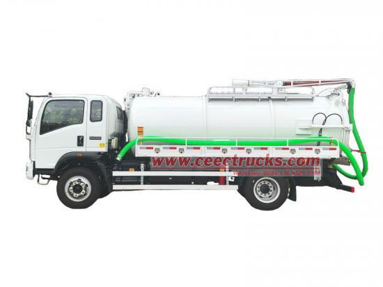 ➤ Trak tangki vakum Howo 5,000 liter mempunyai fungsi menyebu sendiri, mengering sendiri dan memunggah sendiri, dengan cepat mengepam sisa daripada tangki septik ke dalam tangki dan memunggahnya melalui pelepasan hidraulik atau tekanan.