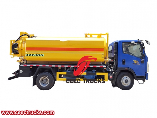 Ini ialah kenderaan sanitasi bandar berkuasa yang dibina pada casis trak ringan HOWO. Kenderaan itu mempunyai berat kasar 12 tan dan dilengkapi dengan enjin pelepasan Euro III 168 kuasa kuda, yang berkuasa. Sorotan terbesar ialah ia dilengkapi dengan tangki kumbahan 5,000 liter dan tangki air bersih 3,000 liter, serta sistem pam vakum MORO PM70A yang cekap. Ini membolehkannya mengepam kumbahan dengan cepat (dalam masa 5 minit) dan mempunyai julat sedutan berkesan melebihi 8 meter. Badan tangki diperbuat daripada keluli karbon berkualiti tinggi setebal 6 mm dan boleh diangkat dan diturunkan secara hidraulik lebih daripada 45 darjah untuk memudahkan pembuangan kumbahan. Konfigurasi standard termasuk tingkap pemerhatian, injap kumbahan, peranti pembersihan, dsb., untuk memastikan operasi yang mudah dan cekap. Di samping itu, tangki bahan api keluli tahan karat 200 liter memastikan hayat kerja yang panjang. Secara umumnya, ini adalah kenderaan pengorekan pelbagai fungsi dengan reka bentuk yang munasabah dan prestasi yang boleh dipercayai, yang sangat sesuai untuk penyelenggaraan rangkaian paip bandar dan operasi sanitasi alam sekitar.