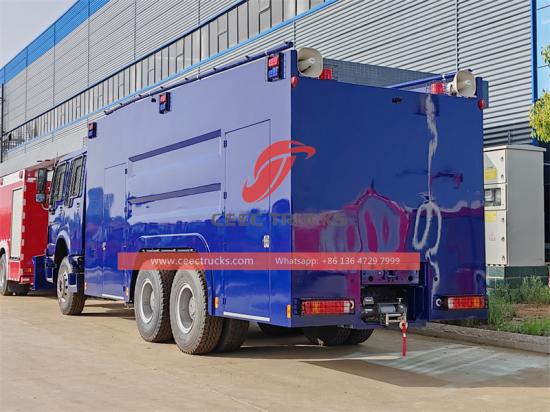 Trak rusuhan kawalan orang ramai berperisai Howo menggunakan reka bentuk kalis letupan semua bahan, struktur dan sistem untuk memastikan pelaksanaan tugas yang selamat dan cekap dalam persekitaran yang melampau. Pemandu perlu mempunyai kedua-dua kemahiran pemanduan khas dan keupayaan tindak balas kecemasan, dan operasinya lebih memfokuskan pada langkah keselamatan pencegahan dan operasi kerjasama jauh. Trak rusuhan kawalan orang ramai berperisai Howo adalah peralatan keselamatan yang sangat diperlukan dalam bidang petroleum, industri kimia, dll.
