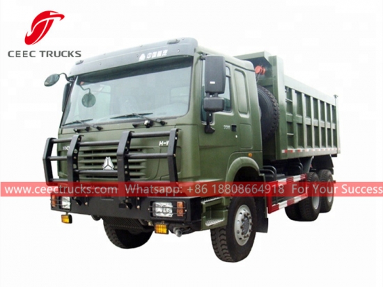 HOWO 6×6 Tipper luar jalan (juga dipanggilHOWO semua trak pembuangan pacuan roda, HOWO euro 2 tipper off-road, HOWO 6×6 lori tipper pembinaan, Hyva hydraulic dumper lori HOWO, HOWO 336HP 6×6 lori longgokan, SINOTRUK HOWO 6×6 tipper-truck, HOWO 10 dumper offroad price, harga off-road offroad HOWO 10, low wheeler off-road price HOWO semua trak pacuan roda)direka untuk pasaran trak berat mewah di luar negara dan domestik. Untuk mengatasi pesaingnya dalam persaingan global, komponen utama trak tipper direka bentuk dengan kerjasama rapat dengan pembekal terkemuka di dunia.
