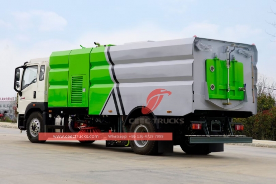 CEEC TRUCKtrak penyapu jalan menggunakan tangki bahan keluli tahan karat keseluruhan, motor Itali atau Amerika Asli untuk operasi mudah, enjin tambahan ISUZU dan JAC, mengelakkan pencemaran sekunder dengan cekap.