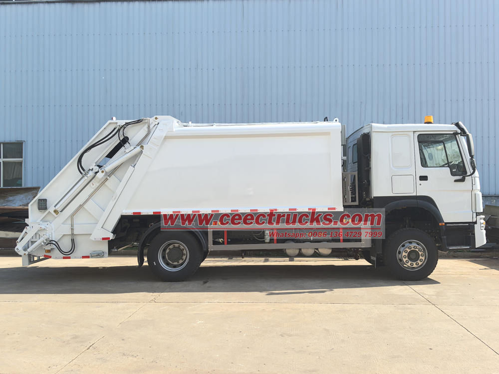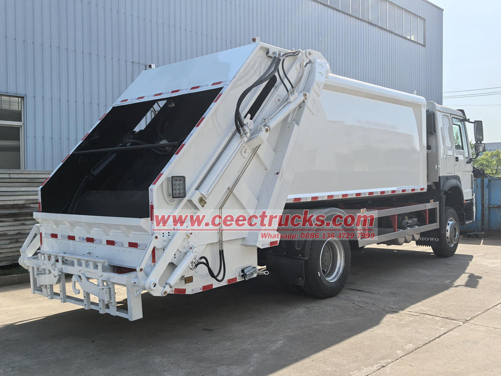 Trak pemadat pemuat belakang HOWO 14cbm ialah kenderaan yang sangat cekap dan boleh dipercayai direka untuk pengurusan sisa bandar dan pinggir bandar. Dengan jarak roda 4600mm dengan enjin 300hp WP10.300E22, pelepasan Euro 3 diesel 9.726L, HW19710 -kotak gear shift, tayar 295/80R22.5 dengan 7 pcs sepenuhnya, dengan A/C, USB, bantuan arah, 3 tempat duduk adalah 1beg garpu. mekanisme flip baldi, terdapat 3 kaedah untuk mengendalikan trak memuat dan memunggah.