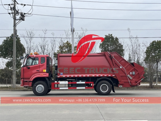 Trak pemadat sisa HOWO 12cbm, HOWO 4×2 casis trak tugas berat pemacu tangan kanan, dilengkapi dengan enjin diesel WEICHAI 290HP, gear transmisi 10-anjakan. Sistem kawalan CAN-bas untuk operasi yang mudah. Semua lukisan dan logo berdasarkan keperluan pelanggan.