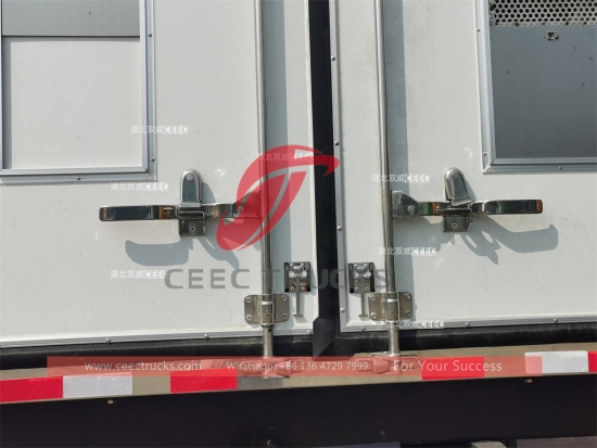 Standard: Lantai aloi aluminium, pintu belakang. Pilihan: 1. Sistem Kawalan Tailift dan Kargo Hidraulik. 2. Pintu sisi, tangga sisi dan tangga. 3. Kawalan kawasan suhu yang berbeza. 4. Reka bentuk penggelek lantai tersuai untuk kerja yang mudah. |