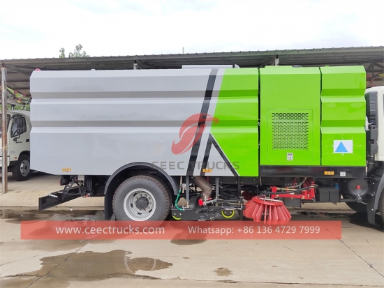 CEEC TRUCKtrak penyapu jalan menggunakan tangki bahan keluli tahan karat keseluruhan, motor Itali atau Amerika Asli untuk operasi mudah, enjin tambahan ISUZU dan JAC, mengelakkan pencemaran sekunder dengan cekap.