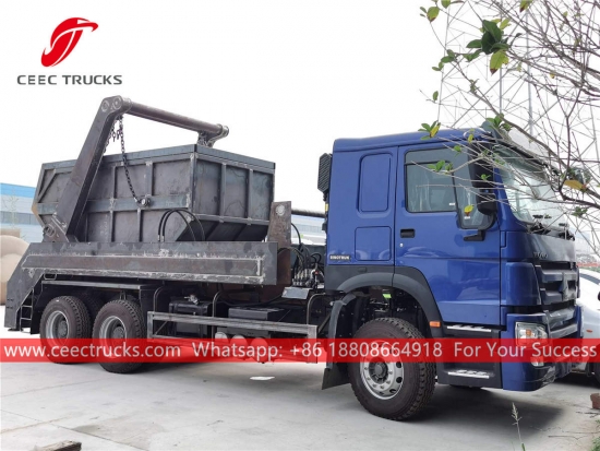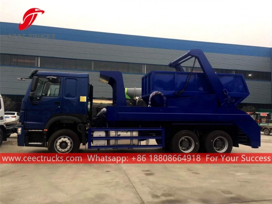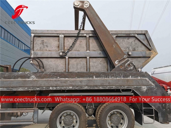 trak pemungut sisa pemuat skip HOWO, casis 6x4 RHD, kotak gear manual 9-anjakan manual, enjin diesel SINOTRUK 290HP, sistem lengan ayun keluli berkekuatan tinggi, peranti kawalan hidraulik dan kotak kawalan Elektrik pilihan. Semua lukisan dan logo bergantung pada keperluan.