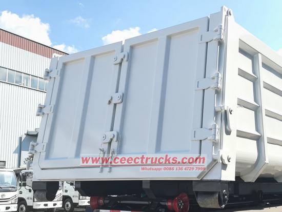 Petak sampah kenderaan dibina daripada plat keluli yang tebal dan berkualiti tinggi, menawarkan rintangan haus dan hentaman yang sangat baik, mampu menahan bebanan dan pengangkutan jangka panjang. Reka bentuk rasional petak dan kapasiti besar menampung pelbagai jenis sisa. Permukaan juga dirawat dengan rawatan anti-karat untuk memanjangkan hayat perkhidmatannya dan mengurangkan kos penyelenggaraan.