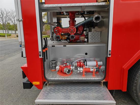 The fire pump is driven by PTO, with a pressure range of 1.6-2.5 MPa and a flow rate of 80-120 kg/s. The fire cannon has a spray speed of 60-100 kg/s and a range of 40-60 meters, which can effectively respond to various fire situations. The