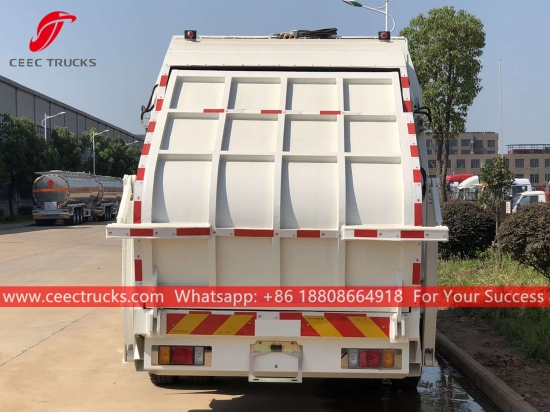 Kenderaan mampatan sampah ISUZU 12cbm, casis trak menggunakan enjin diesel ISUZU 205HP, gear transmisi 6-anjakan MLD. Kotak kawalan PLC untuk operasi mudah. Semua lukisan dan logo berdasarkan keperluan pelanggan.