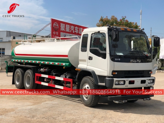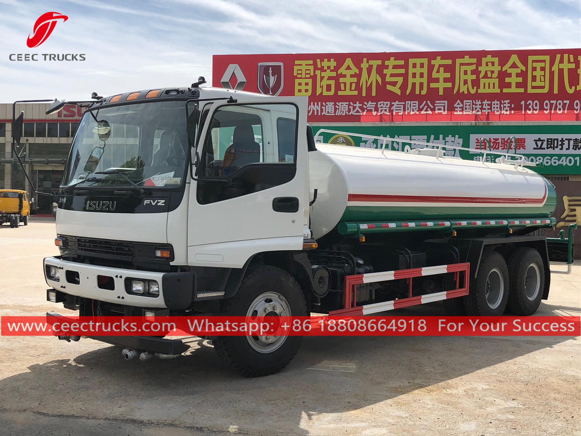 Trak penampung air ISUZU 15CBM (juga dipanggilLori Tangki Air ISUZU FVZ, Lori penyembur air jualan panas ISUZU, Lori Pemercik Air ISUZU 15,000L, Trak pengangkutan air 10 roda ISUZU, Trak penghantaran Air Baharu, lori tangki air 6x4ISUZU) ialahdigunakan untuk pembersihan jalan, penghijauan pokok dan rumput, pembersihan bangunan tinggi, pembinaan jalan dan kilang. Ia mempunyai fungsi membilas, menyiram, mengangkut air dan memadam kebakaran.