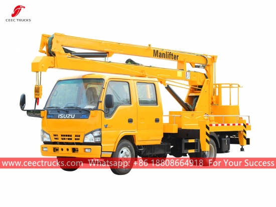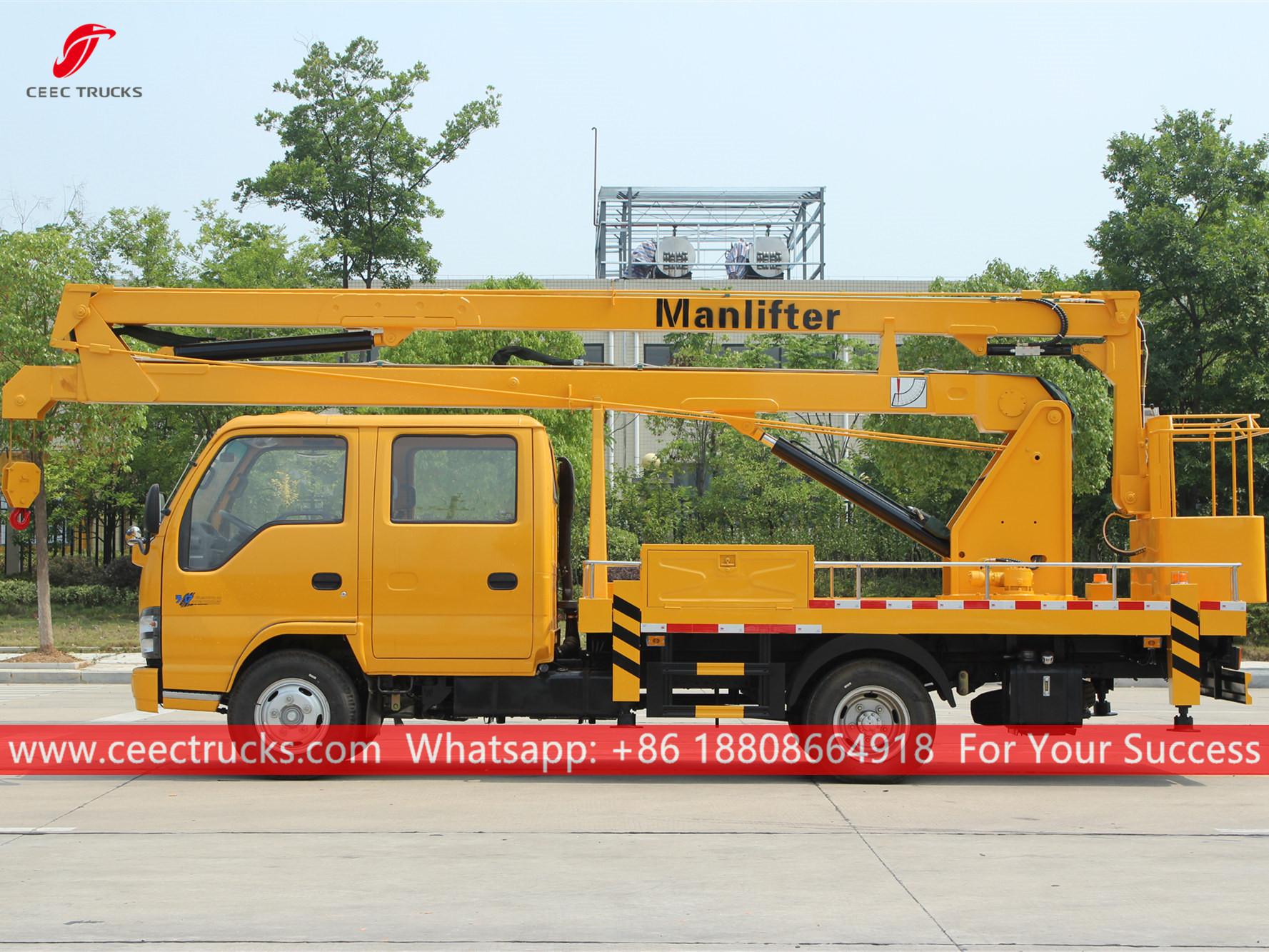 Trak angkat kren baldi 16m, casis ISUZU 600P 4x2, kotak gear manual 5 anjakan, enjin diesel ISUZU 120HP, mengecat dan logo bergantung pada keperluan. Kotak kawalan bahasa pelanggan.