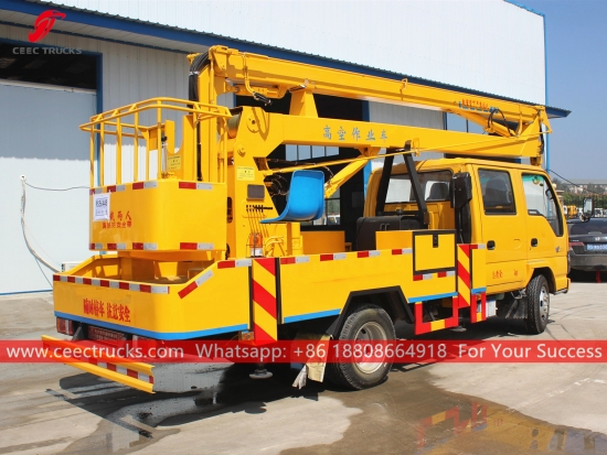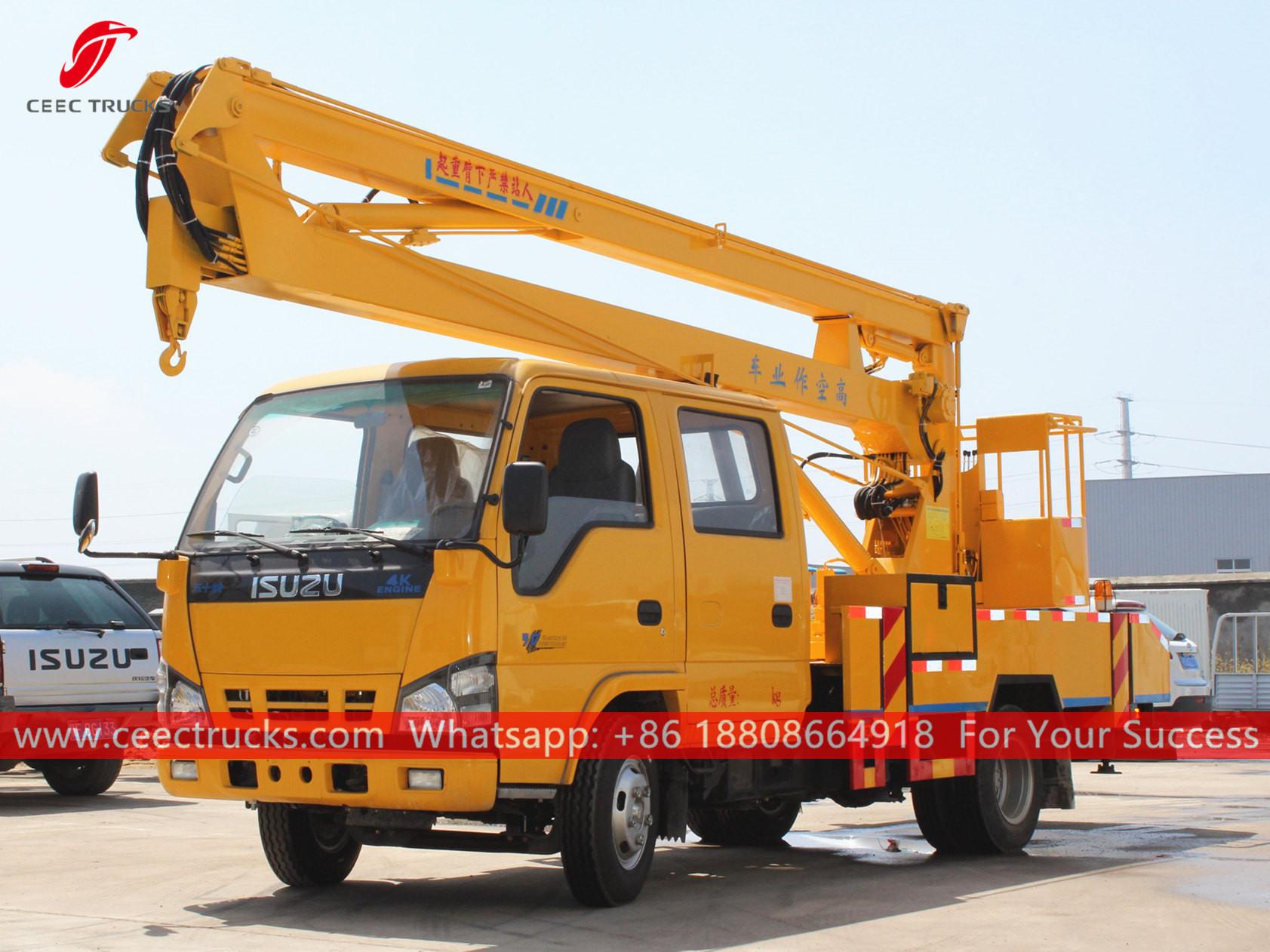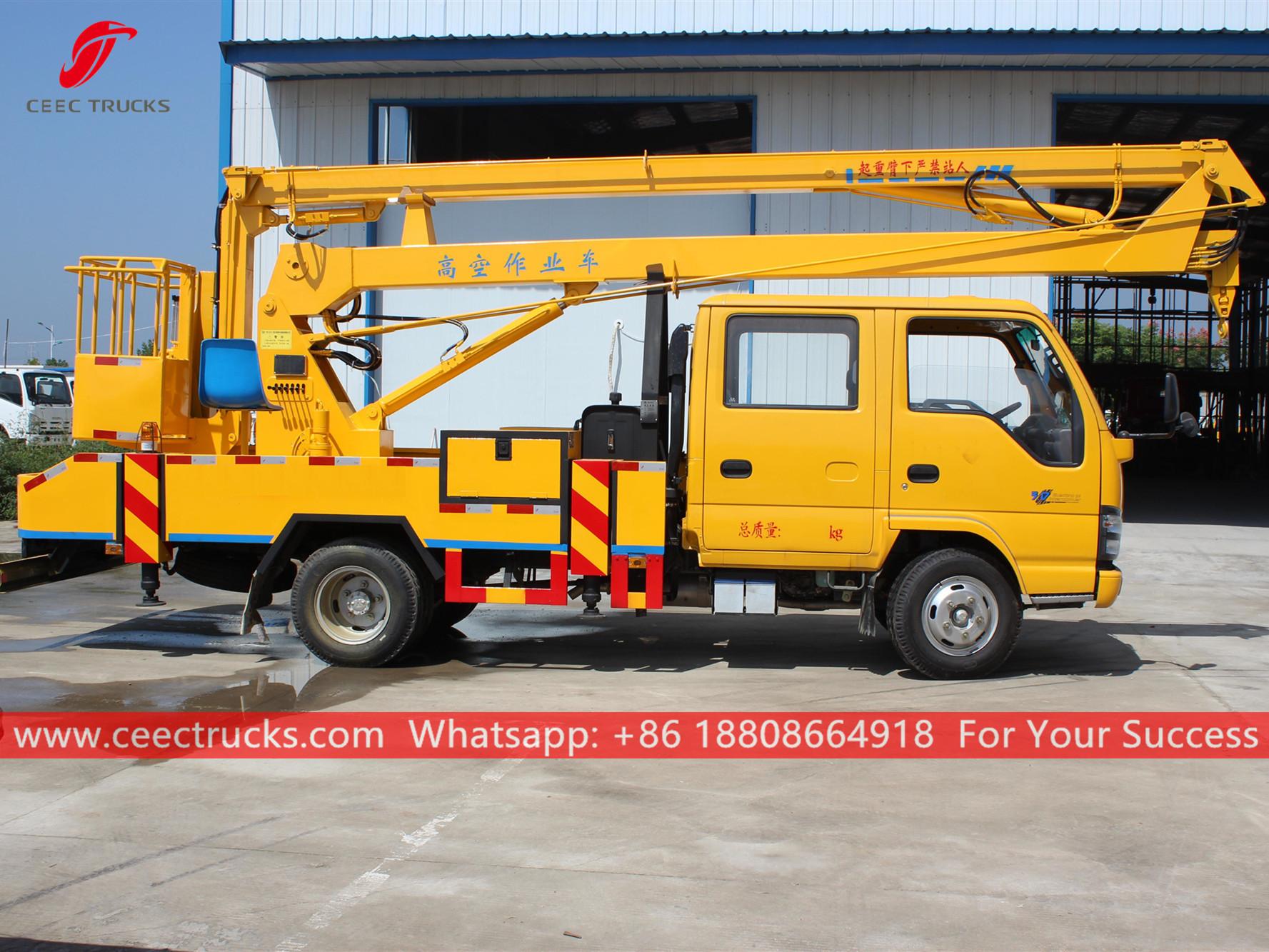 Kenderaan Pelantar Udara 16m ISUZU (jugadipanggil Trak Platform Kerja Udara ISUZU, Pengangkat Mudah Alih ISUZU, Platform udara yang dipasang pada trak ISUZU, trak baldi angkat lengan jualan panas, Kenderaan Operasi Platform Tinggi ISUZU, lif boom dipasang pada trak harga rendah)sesuai untuk penyelenggaraan lampu isyarat, lampu jalan, pokok landskap, pembersihan/penetapan papan tanda dan kerja-kerja udara tinggi yang lain.