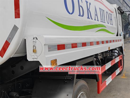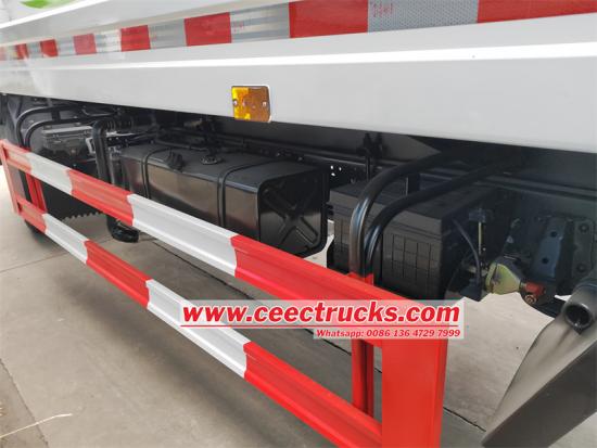 • Perenjis belakang: Di bahagian belakang trak, mekanisme penyembur belakang menyediakan corak semburan air yang berkuasa dan boleh laras yang direka untuk menutup jalan di belakang kenderaan. Ia sesuai untuk kawalan habuk di lebuh raya, pembersihan tapak selepas pembinaan, dan mengekalkan permukaan jalan dengan mengagihkan air secara sama rata. Pengendali boleh mengawal lebar dan keamatan semburan, memastikan penggunaan sumber air yang cekap dan hasil penyelenggaraan jalan yang optimum.