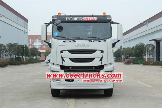 Pemuat belakang tugas berat Isuzu 25 cbm menggunakan casis teksi Isuzu GIGA VC61 6X4, dilengkapi dengan radio antara muka USB dan penghawa dingin, jarak roda 4600+1370mm, enjin 6UZ1-TCG61 380HP, kotak gear 12-kelajuan FAST, letak badan atas 9839ml Euro 6 9839ml reka bentuk badan kotak sampah, diperbuat daripada keluli karbon, dengan ketebalan sisi 4 dan bawah 5, rawatan anti-karat di dalam dan luar, dan menggunakan sistem kawalan elektronik CAN-BUS dan sistem kawalan injap hidraulik.