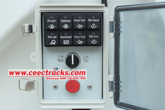 •Empat mod operasi:Kenderaan ini dilengkapi dengan 4 mod operasi, termasuk kotak kawalan elektronik teksi, tuil operasi hidraulik manual di sebelah pemandu, kotak kawalan elektrik di sebelah kiri pintu belakang, dan tuil operasi manual di sebelah kanan pintu belakang. Reka bentuk sistem kawalan berbilang ini bukan sahaja meningkatkan kemudahan operasi, tetapi juga memastikan kebolehpercayaan dalam keadaan khas.