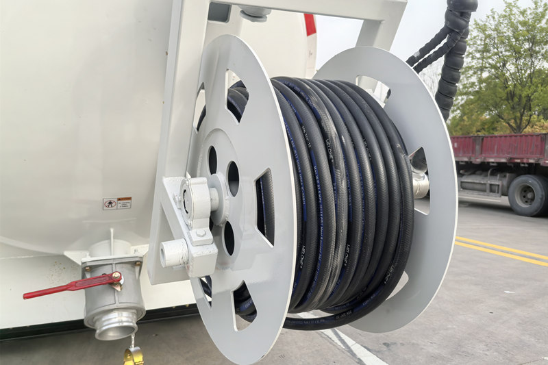 Badan tangki kenderaan itu diperbuat daripada keluli karbon berkualiti tinggi Q355. Silinder dan kepala dikimpal dengan kimpalan lurus plat keluli karbon tebal 6mm.Strukturnya kukuh. Badan tangki diperbuat daripada bahan anti-karat dan dilengkapi dengan penggera paras cecair dan peranti nyahcas cepat.