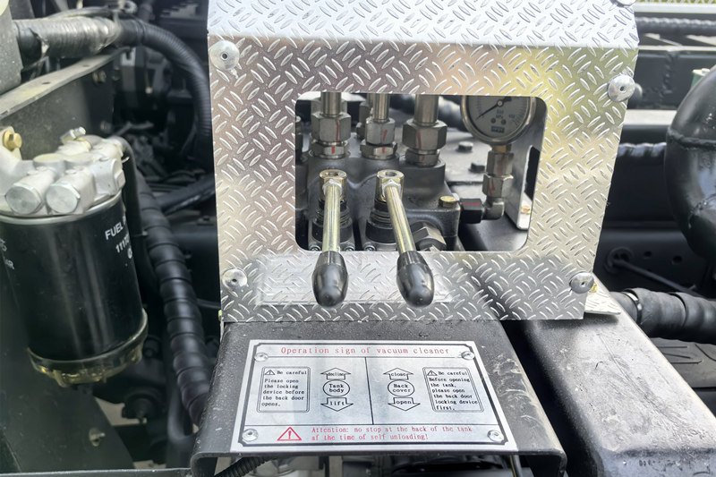 Kenderaan itu dilengkapi dengan pam air tekanan tinggi dan sistem sedutan vakum berkuasa tinggi. Mula-mula ia boleh menggunakan pistol air tekanan tinggi untuk menyiram kotoran degil pada dinding dalaman paip, dan kemudian menggunakan pam vakum yang berkuasa untuk menyedut kumbahan dan enap cemar ke dalam tangki tertutup untuk mencapai pembersihan yang cekap.