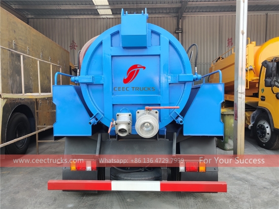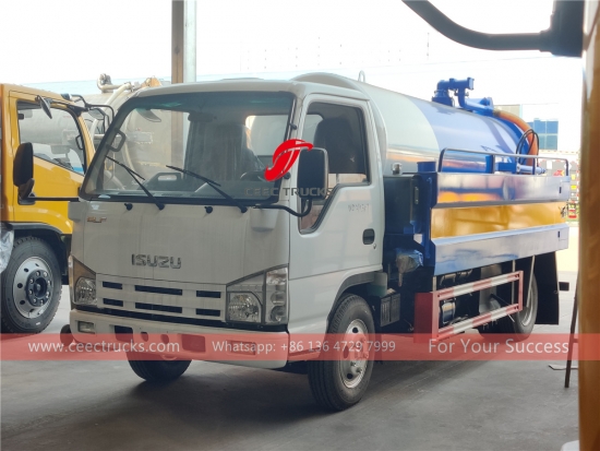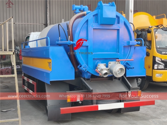 Eksport trak sedutan gabungan ISUZU 5CBM terbaik ke Afrika, casis ISUZU ELF 4x2 LHD, kotak gear manual MSB 5-shift, enjin diesel ISUZU 98 HP, 7.00-16tayar dengan satu tayar ganti, pam jet tekanan tinggi jenama terkenal dan pam vakum. Semua lukisan dan logo bergantung pada keperluan.