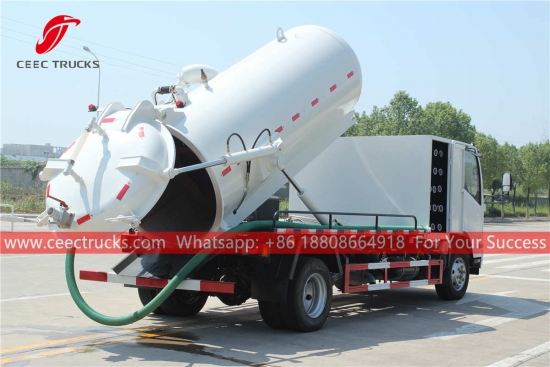 Lori Kumbahan Vakum ISUZU (jugadipanggiltrak sedut pembetung, ISUZU 6 roda lori pembetung, ISUZU 4×2 trak vakum, trak pembersihan kumbahan ISUZU, trak tangki vakum ISUZU, pembekal trak vakum)ialahdigunakan untuk mengumpul, mengangkut dan mengeluarkan cecair seperti air kotor, enap cemar, septik, minyak mentah, dan bahan pepejal seperti batu kecil, batu bata juga. Ia sesuai untuk membersihkan pembetung, cesspit, cesspool, gully, dll. Ia digunakan secara meluas dalam persekitaran dan bidang sanitasi.