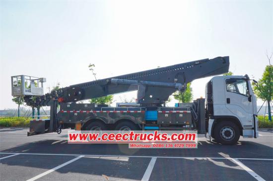 Kenderaan platform kerja udara Isuzu FVZ 56m dilengkapi dengan enjin berkuasa Isuzu dan kotak gear 9-kelajuan PANTAS, memberikan kuasa yang sangat baik dan kawalan lancar. Lengan kerja ultra panjang 56m dan reka bentuk teleskopik segerak sembilan bahagian empat belas sisi mempunyai julat kerja yang luas dan tepat. Dilengkapi dengan pelbagai peranti perlindungan keselamatan untuk memastikan keselamatan pengendali. Pada masa yang sama, ia menyediakan pelbagai mod operasi untuk memenuhi keperluan operasi yang berbeza.