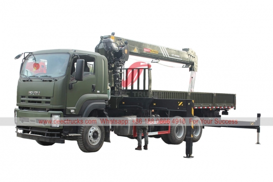 Lori 10 roda ISUZU Dengan Kren(juga dikenali sebagai kren Palfinger 16 tan, trak kren ISUZU, trak ISUZU dengan kren palfinger, kren pemasangan trak ISUZU 350HP, kren Teleskopik Boom untuk dijual, kargo trak dengan kren palfinger, kren palfinger berdasarkan casis trak ISUZU dengan 6× kren boom, ISUZU krendigunakan untuk mengangkat kargo, memuat, mengangkut dan memunggah barang berat.