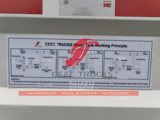 LORI CEECtrak tangki air terutamanya terdiri daripada casis, tangki, pam, injap, dan paip air, pemercik dan bahagian lain. Trak air diperbuat daripada kepingan keluli karbon berkualiti tinggi.
