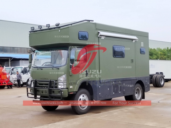 ISUZU 700P 4×4 trak camper, ISUZU Left Hand Drive model 4x4 casis, MLD 6-shift manual gearbox, ISUZU 190HP diesel engine, lukisan dan logo bergantung pada keperluan.