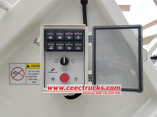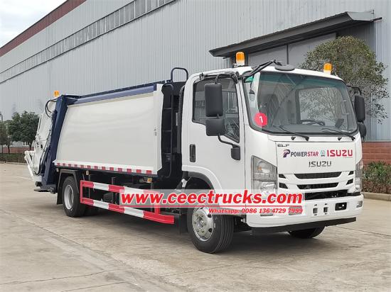 Isuzu rear loader truck with a flip mechanismTrak pemadat sampah Isuzu 700P, yang diubah suai pada casis Isuzu NPR 700P, jarak roda 4175mm, dengan A/C, USB, bantuan arah, enjin 4HK1-TCG61, pelepasan EURO 6 5193ml, kotak gear 6-kelajuan Isuzu MLD, kenderaan itu dilengkapi dengan 10cbm karbon keluli tong sampah sisi bahagian atas dan bahagian bawah padat berjenama Cina. silinder hidraulik, ekor adalah mekanisme flip yang boleh dibalikkan, yang boleh menggantung tong sampah 240L, 360L, 660L, 770L, sistem kawalan elektrik CAN-BUS untuk operasi yang mudah.