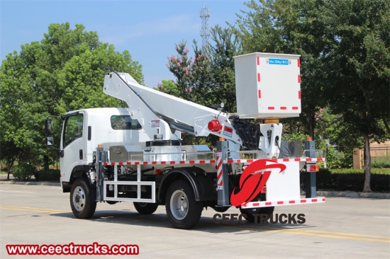 Kenderaan kerja udara Isuzu NPR menggabungkan keupayaan luar jalan lasak dengan fungsi unggul, menampilkan casis 700P, ketinggian kerja 30m, boom teleskopik 6 keratan dan pelbagai kelebihan fungsi, menjadikannya unik dalam sektor kenderaan kerja udara. Ia mempunyai kualiti cemerlang berikut: