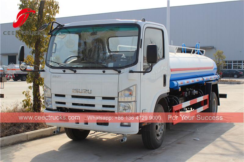 ISUZU water truckterutamanya terdiri daripada casis, tangki, pam, injap, dan paip air, pemercik dan bahagian lain. Trak air diperbuat daripada kepingan keluli karbon berkualiti tinggi.