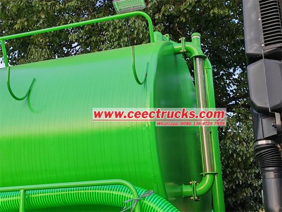 Trak penyedut vakum Isuzu FVR GIGA 8cbm CEEC diubah suai pada casis jarak roda Isuzu FVR GIGA 4X2 4500mm, dengan enjin diesel Isuzu 6HK1-TCG61 240HP, kotak gear FAST 8 syif, anjakan 7790ml, trak A/C, dilengkapi USB 1. tangki pembetung enapcemar, pam vakum terkenal China,kecekapan tinggi, kadar vakum sehingga 93%, sedutan dan pelepasan yang cepat.