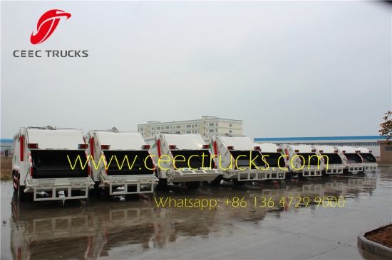 (Sebanyak 10 Unit ISUZU 8CBM trak kompaktor menolak selesai pemeriksaan dan sedia untuk dihantar ke Pelabuhan Shanghai)