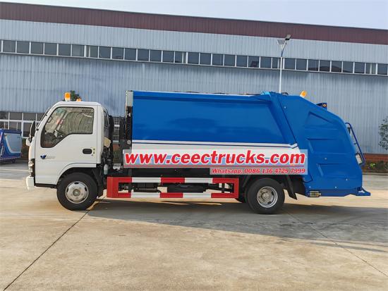 Trak sampah muatan belakang Isuzu 8cbm yang dikeluarkan oleh CEEC dilengkapi dengan casis Isuzu 4x2 ELF 600P, enjin diesel Isuzu 120HP 4KH1, sesaran Euro 6 2999ml, jarak roda 3815mm, 2 tempat duduk, brek minyak 4-strokeb, bantuan 4-strokeb minyak sebaris tong. Trak mempunyai 3 mod operasi, tentang kawalan elektrik dalam teksi, kayu bedik hidraulik, kotak kawalan elektrik di pintu belakang.