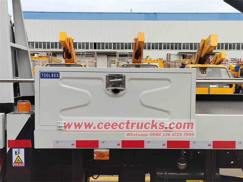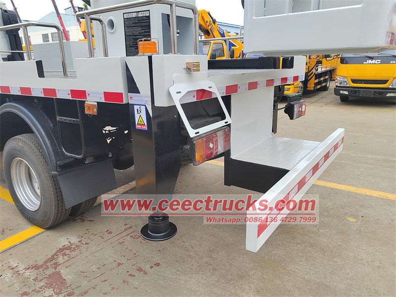 Trak angkat udara luar jalan CEEC TRUCKS 4x4 dihasilkan berdasarkan casis trak luar jalan ISUZU NKR 4x4 Jepun asal, struktur keseluruhannya diperbuat daripada plat keluli berkekuatan tinggi, yang selamat dan boleh dipercayai. Ia dilengkapi dengan cadik hidraulik boleh laras, dengan rentang yang besar dan lebih stabil; dilengkapi dengan kawalan manual, kawalan elektrik, kawalan jauh dan mod operasi lain, mudah dan pantas; Ia juga mempunyai interlock, perlindungan berundur lembut, had automatik ketinggian kerja dalam persekitaran berbahaya dan sistem kecemasan automatik untuk melindungi keselamatan kakitangan dan keselamatan pembinaan.