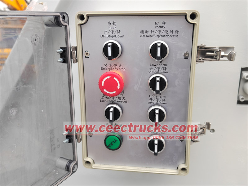 Trak platform kerja udara ISUZU dilengkapi dengan sistem kawalan Siemens PLC, dengan bahasa Inggeris standard, juga boleh disesuaikan dengan bahasa Perancis, Bahasa Arab, Bahasa Rusia, dll. Juga dipadankan dengan tahap dan hidraulik untuk kerja yang mudah. Di bawah menunjukkan kotak kawalan pada trak angkat udara ISUZU.