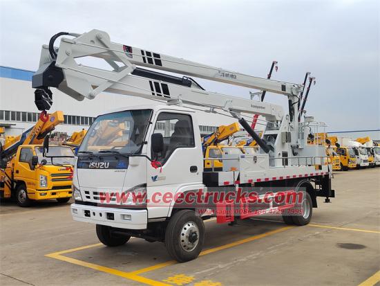 Folding arm aerial work platform with height 14mTrak pengangkat lengan lipat ISUZU NKR 14m juga dipanggil Kren baldi, lif boom, trak platform tinggi, kenderaan angkat lelaki bergerak, trak angkat lelaki, yang sesuai untuk penyelenggaraan lampu isyarat, lampu jalan, pokok landskap, pembersihan/penetapan papan tanda dan kerja-kerja udara tinggi yang lain.Trak angkat udara Isuzuboleh membekalkan platform platform kerja udara pada trak ISUZU NKR dari 6m-8m, 8m-12m, 14m-16m sebagai jenis lengan lipat, juga tersedia 10-14m,14m-16m,18m-20m, 20-24m, 28m-32m sebagai jenis lengan lurus, Bakul bertebat adalah pilihan untuk penebat biasa yang berfungsi 220V. Juga boleh disesuaikan dengan boom dan bakul bahan gentian kaca, yang boleh digunakan untuk bekerja sebagai maksimum 46KV.