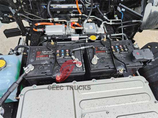 Pek bateri kenderaan casis elektrik Isuzu EVM600 menggunakan pek bateri fosfat besi litium bersepadu terkini yang dibangunkan oleh CATL, dengan kapasiti 106.95kwj, terletak di kedua-dua belah bingkai. Berbanding dengan pek bateri tradisional, bateri pek tunggal yang digunakan dalam kereta baharu boleh mengurangkan bilangan abah-abah dan pendakap wayar voltan tinggi di dalam kotak, membantu mengurangkan berat keseluruhan kenderaan. Kedua, julat pelayaran model ini di bawah kaedah kelajuan malar WLTC boleh mencapai 480km, dengan mengambil kira keperluan julat pelayaran pemandu trak dalam operasi harian.