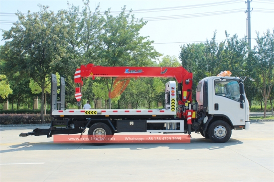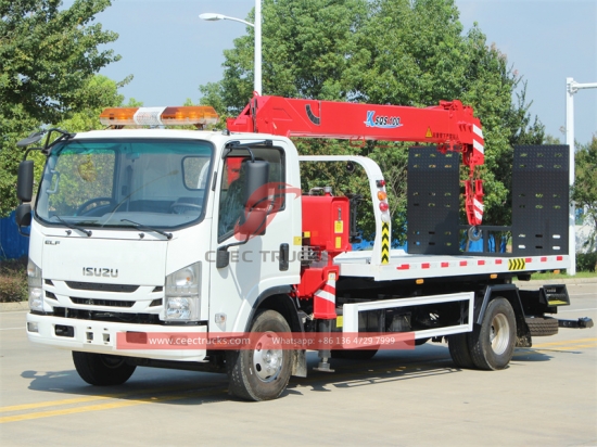 Trak pemulihan tunda ISUZU ELF, prestasi yang baik dan sangat boleh dipercayai. dengan teknologi terkini CEEC pada trak pembongkar penyelamat ISUZU. yang menggunakan casis 4x2, kotak gear manual MSB 5-shift, enjin diesel ISUZU 120 HP, platform panjang dengan kerja silinder hidraulik, mengecat dan logo bergantung pada keperluan.