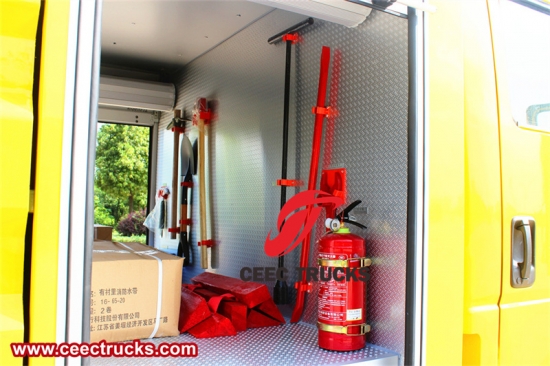 Mempunyai lampu berputar penggera dan yang dipasang di atas kabin , mempunyai peralatan memadam kebakaran dan alatan kenderaan. |