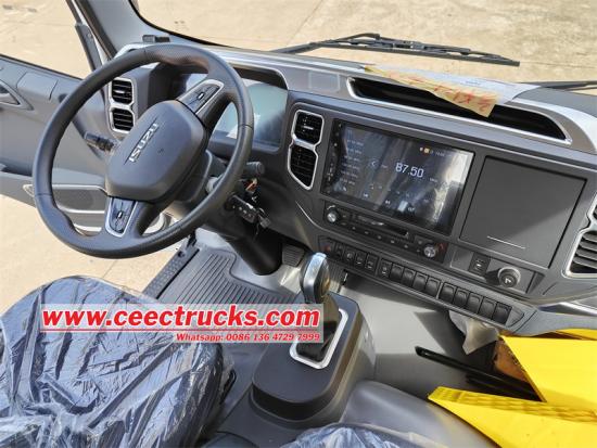 Kotak kawalan elektrik di dalam teksi:Terletak di dalam teksi, ia adalah mudah untuk pemandu mengawal operasi pemunggahan dan pemunggahan tong sampah yang dipadatkan melalui butang.