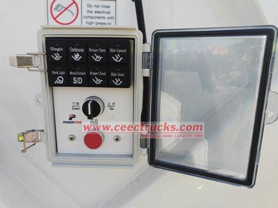 ISUZU EVM600 light duty electric rear loader compactor truck is designed for solid waste collection, compression and transprotation, which use dual-track packing system, push shovel matched working with nylon plate for smoothly working, and this system is designed with double way compressing function, matched working with back pressure valve, to guarantee loading ability more efficiency. CEEC TRUCKS adope multiple nylon plate for rear sliding plate, and making up and down working more efficiently. The rear loading type can be customized as 240L and 1100L internation standard garbage bins, lifting capacity can be over 1000kg.