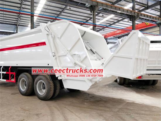 Trak pemadat sampah Isuzu FVZ 16CBM menggunakan sistem kawalan elektronik CAN-BUS dan sistem kawalan injap hidraulik, dan panel kawalan boleh dipilih dalam bahasa Inggeris atau bahasa tersuai. Kaedah pemunggahan ialah jenis tolak keluar mendatar. Ia datang standard dengan dua peranti flip 240 liter, dan boleh disesuaikan dengan kapasiti berbeza seperti240L, 660L dan 1100L. Trak pemadat sampah Isuzu FVZ menggunakan proses penyemburan dua lapisan primer dan satu lapisan lapisan atas. Warna dan logo boleh disesuaikan mengikut keperluan pelanggan. Konfigurasi standard kilang termasuk subframe berbentuk U, sistem hidraulik, peranti perlindungan keselamatan, lampu amaran berputar, lampu kerja, tempat letak tangan, spatbor dan tepi jatuh getah.