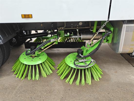 Jumlah 4 pcs berus mekanikal dan 1 sedutan dilepaskan di belakang, ia dipandu oleh motoispeed hiraulik boleh laras, boleh dikawal secara bebas, mempunyai fungsi pengelakan automatik |