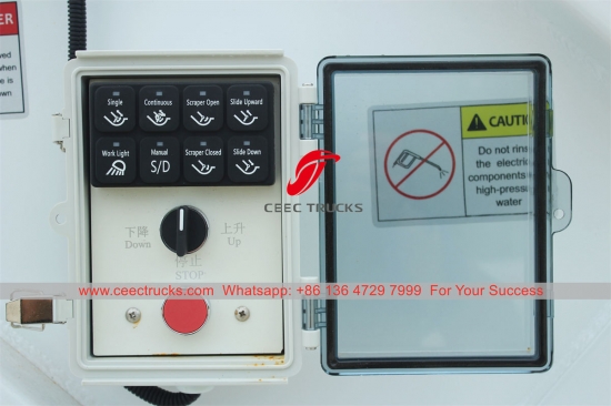** Penggera belakang dan Kamera boleh dilengkapi. ** Itali mulit-valve boleh dipilih. ** 240L (tong tunggal atau tong berkembar) atau tong standard 660 L, 1100 L dengan pengangkat tong boleh dipilih. |